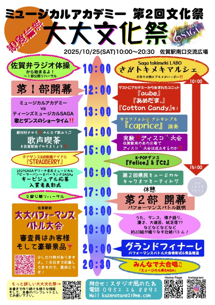佐賀で活躍しているティーンズミュージカルSAGAそしてミュージカルアカデミー​の2回目の文化祭です。