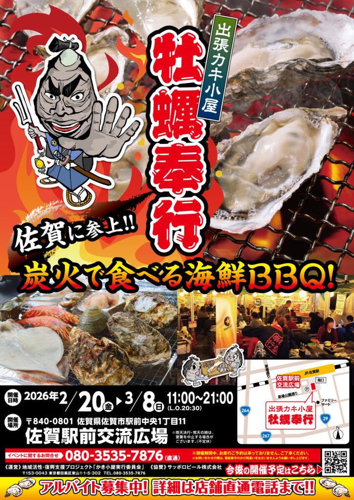 【2/20~3/8開催】出張カキ小屋「牡蠣奉行」in 佐賀駅前交流広場