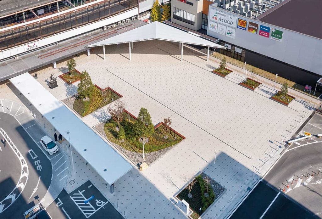 佐賀駅佐賀城口(南口)に、これまでの駅前広場は「車中心」の広場でしたが、「人中心」の広場として整備されました。